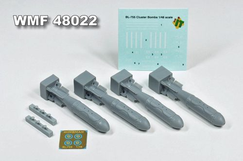 Wingman Models - WMF48022 - 1:48 | BL.755 Cluster Bomb Unit Four Hunting Engineering BL. 755 CBUs including PE parts and decals. These bombs were used by the air forces of Germany, England and France and could be found on the Tornado, Dassault-Dornier Alpha Jet, the F-104, Jaguar and Harrier (designed to be used with Kinetic Model Kits, and Wingman Models kits)[Dassault-Dornier Alpha Jet A/E] (designed to be used with Kinetic Model Kits, and Wingman Models kits) More | Aircraft detailing sets (resin) | Limited Availability | £13.99 |