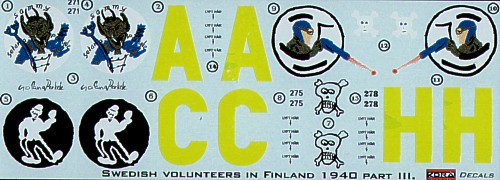 Gloster Gladiator Mk.II on skis Decals Finland. Swedish Voluntary Wing F19 part 3