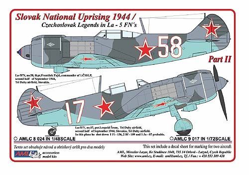 AML - AMLC9017 - 1:72 | Slovak National Uprising 1944/ Czechoslovak Legends in Lavochkin La-5FN's 2 decal versions : Part II More | Aircraft decals (military) | Catalogue | £4.40 | ||