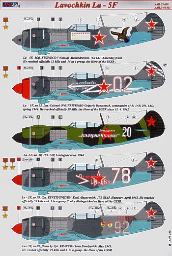 AML - AMLD72052 - 1:72 | Soviet Aces in Lavochkin La-5FN More | Aircraft detailing sets (decal and resin) | Catalogue | £5.80 | ||