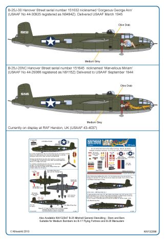 Hannover Street Mitchells' North-American B-25J-30NC 151632 'Gorgeous George Ann/ There She Blows' N9494Z (USAAF No 44-30925) B-25J-20NC 151645 'Marvellous Miriam' N9115Z (USAAF No 44-29366)