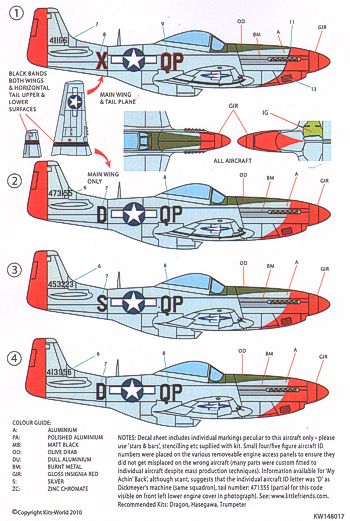 North-American P-51D Mustang 334th FS,4th FG (4) 411661 QP-X Lt.Col Jack Oberhamsly 'Iron Ass'; 473155 QP-D 'My Achin' Back'; 453223 QP-S Lt Arthur Bowers 'Sweet Arlene'; 413056 QP-D Lt Bob Dickmeyer 'Jan'. Individual aircraft markings only.