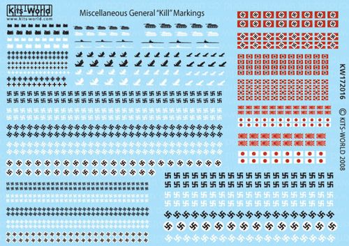 Allied Kill Markings including several styles of Swastikas and Japanese Hinomarus suitable for use on Supermarine Spitfire, Hawker Hurricanes, Hawker Typhoon, Republic Thunderbolts, North-American Mustangs, Grumman Hellcats etc.