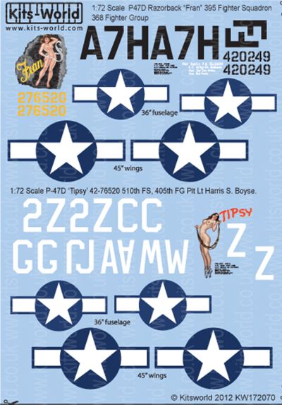 Republic P-47D Thunderbolt 'Razorback' 'Fran' 44-20249 395th FS, 368 FG P-47D Thunderbolt 'Tipsy' 42-76520 510th FS, 405th FG Pilot Lt Harris S. Boyse.