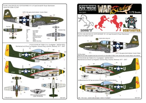 North-American P-51B-1-NA Mustang (NA102) (2) 43-12375 FT-E BONNIE B II Capt Donald M 'Buzz' Beer bower 353rd FS/ 354th FG 9th AF; P-51D-25-NA 44-73264 CY-U Gunfighter 343FS/ 55FG Warbird.