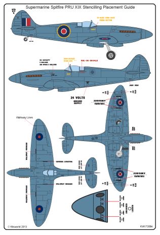 Supermarine Spitfire PRU Mk.XIX Includes WWII and Post War Roundels, Generic Serials and Detailed Stencilling includes: