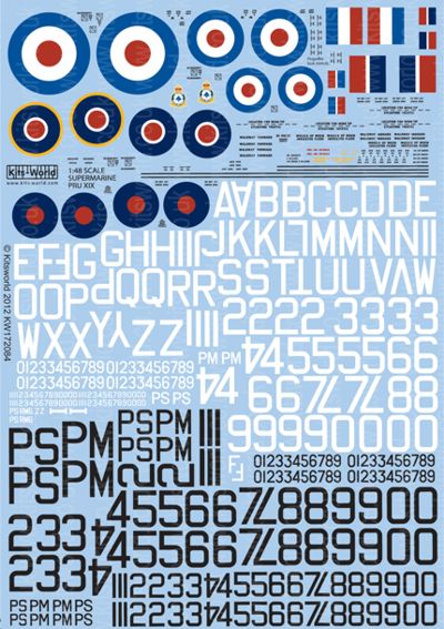Supermarine Spitfire PRU Mk.XIX Includes WWII and Post War Roundels, Generic Serials and Detailed Stencilling includes: