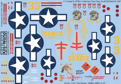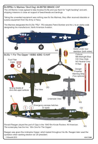 North-American B-25J Mitchell 43-28012 '1 For the Gipper' 100BS 42BG 13AF, Mitchell B-25-PBJ-1J 'Devil Dog' Marines 44-86758 N9643C CAF