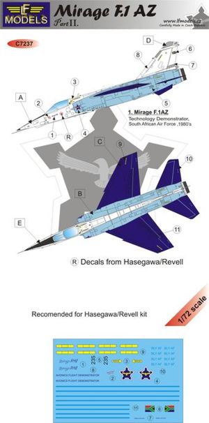 Dassault-Mirage F.1AZ Part 2. Includes resin nose and bulge and decals for SAAF/South African Air Force, Hoedspruit AFB 1977
