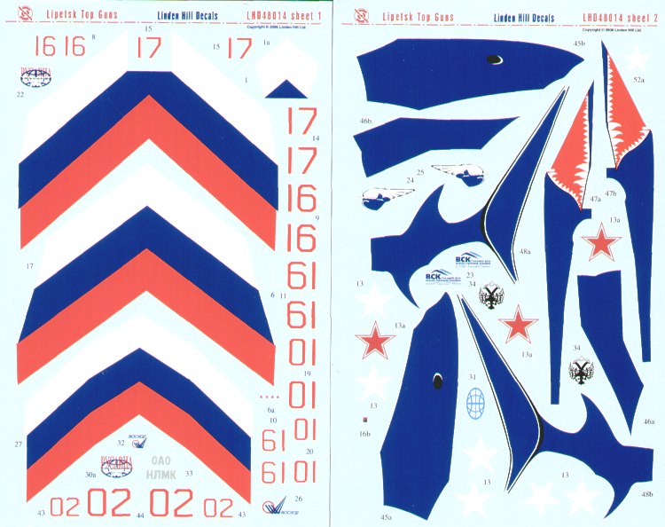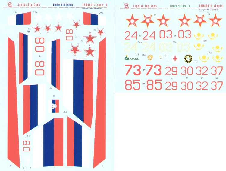 Lipetsk Top Guns - The Aircraft of the Soviet Air Force's elite 4. TsBP PLS (15) Sukhoi Su-27SM; Red 02; Sukhoi Su-25T; Red 85; Sukhoi Su-25; Red 73; Mikoyan MiG-29 9-13; Red 29; Mikoyan MiG-29 9-13; Red 32; Mikoyan MiG-29 9-`Sukhoi Su-27S; Red 08 `Lipetsk Shark'; Sukhoi Su-27S; Red 01. Bonus options for Mikoyan MiG-29; Mikoyan MiG-29UB [Su-25K]