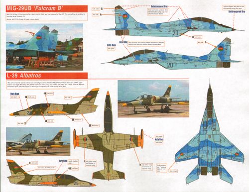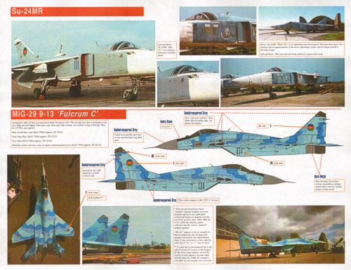 Post-Soviet Air Force Azerbaijan AF. Mil Mi-8T Hip 4K-25-93; Mi-24G Super Hind No 302; Mi-24V and P Hind 102 and 172; MiG-25P, PDS, RU; Su-24MR 101 or 111; MiG-29 'Fulcrum' C 01MiG-29UB 'Fulcrum' B 20; Aero L-39 Albatross 25; Su17M3 Fitter 81; Sukhoi Su-25 and Su-25UB Frogfoot 28, 24, 39