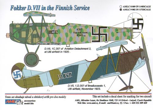 AML - AMLC9002 - 1:72 | Fokker D.VII in the Finnish Service x 2 More | Aircraft decals (military) | Catalogue | £4.40 | ||