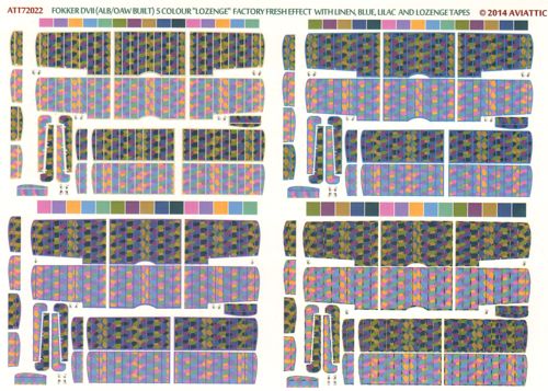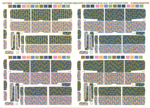 Aviattic - ATT72022 - 1:72 | Fokker D.VII (alb/oaw built) 5 colour lozenge factory fresh effect with linen, blue, lilac and lozenge tapes (x4) More | Aircraft decals (military) | Catalogue | £16.00 | ||