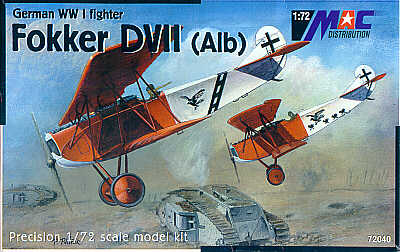 FCM - FCM72018 - 1:72 | Fokker Fighters (7) Fokker Dr.I Triplane (1) Jasta 6 Lt Hans Kirchstein, black/white bands on wings and fuselage; Fokker D.II (1) Kest.4b 1916 black/white rear fuselage; Fokker D.VII (5) Jasta 40 Carl Degelow Stag on fuslage; Jasta 18 Vzfw.Glatz, Lt Raben, Lt Kustner all red/white fuselage with bird design. Colourful collection More | Aircraft decals (military) | Catalogue | £11.25 | ||