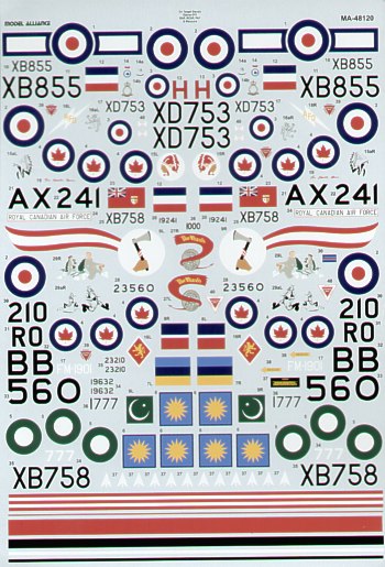 North-American F-86 Canadair and CAC Sabres Part 1. (8) XB856 ; XD753 Sqn Ldr Osbourne both 66 Sqn RAF Linton-on-Ouse 1956; 19241 (designed to be used with Airfix kits) -241 421 Sqn RCAF 1954; 19632 422 Sqn RCAF 1953; 19584 BB-560 414 Sqn RCAF 1953 Camo; 23210 RO-210 1 OUT 1950; FM190111 Sqn Malaysia Air Force 1970; 1777 Pakistan Air Force 1970 (BISMay22)