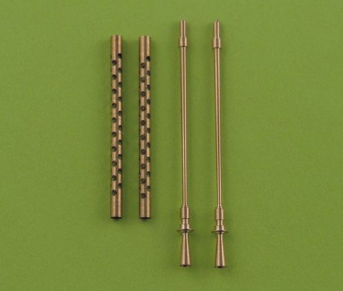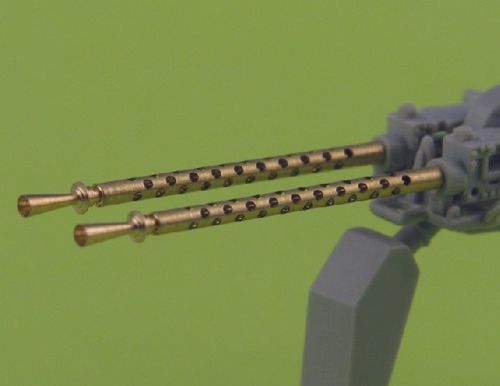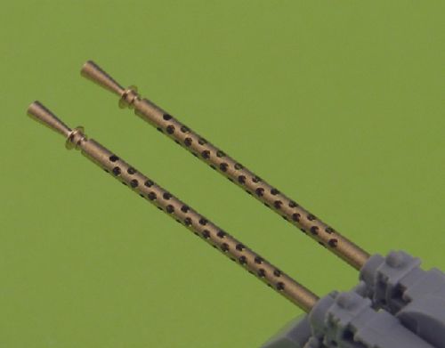 Browning M2 aircraft .50 caliber (12.7mm) barrels with flash hiders (x 2 pieces) Used in many types of aircraft, PT boats and AFV during WWII and after. Version with flash hiders widely used on PT boats. The set includes two turned brass barrels with drilled cooling jacket. It is very simple to use in Your model, and makes it extremely realistic. Simply cut off the original plastic barrel and drill a hole in the remaining plastic parts and insert the metal barrel using Cyanoacrylate adhesives.