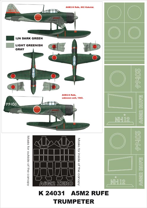 Nakajima A6M2-N Rufe floatplane (canopy frame paint masks (inside and outside)) + insignia and markings masks (designed to be used with Trumpeter kits)