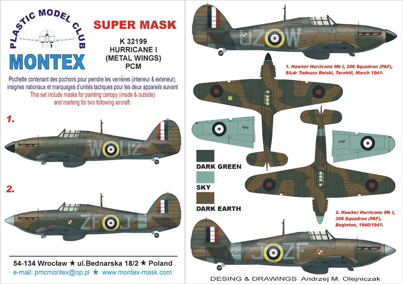 Hawker Hurricane Mk.I (MET.WINGS) (canopy frame paint masks (inside and outside)) + insignia and markings masks (designed to be used with Pacific Coast Models kits)