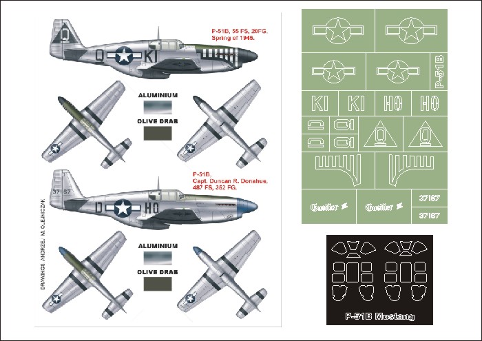North-American P-51B Mustang (canopy frame paint masks (inside and outside)) + insignia and markings masks (designed to be used with Tamiya kits)