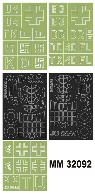 Junkers Ju-88A1 canopy frame paint masks (inside and outside) + insignia and markings masks (designed to be used with Revell kits)