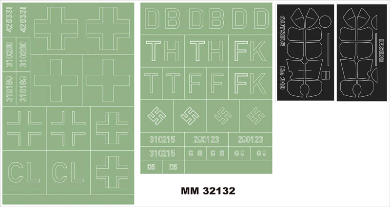 Heinkel He-219A-2/He-219A-5/He-219A-7 canopy frame paint masks (inside and outside) insignia and markings masks (designed to be used with Revell kits)