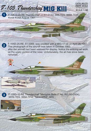 2. F-105D-25-RE, 61-0069, was credited with a MIG-17 kill on April 28,1967. This photograph of the aircraft was taken in October 1983, after the aircraft had been restored for display. Notice the enticing art work on the upper portion of the nose. Unfortunately, the art has since been removed.