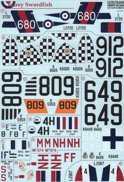 9. Swordfish Mk.II 816 NAS, FAANumber: S (NF243)July 1944 Camouflage fuselage and lower surfaces - white, upper surface - the old standard color. The aircraft is marked with a thin band of white invasion okaemkoy on the fuselage and wings. Markings on the fuselage - the type C1, on the upper wing - type B, on the ground - no.