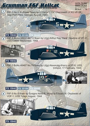 4. F6F-5 No,8 flown by Ensigns Alred R. Wood & Edward W. Olszewski of VOF-1, USS Tulagi, August, 1944.