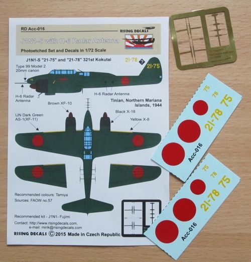 Nakajima Type-2 (J1N1-R) Reconnaissance Plane (Gekko) H-6 Radar Antenna and decals (designed to be used with Fujimi kits)[Nakajima J1N1-S "GEKKO"]