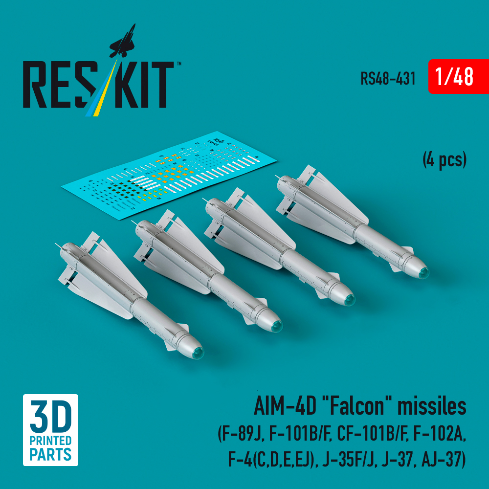 AIM-4D Falcon missiles (4 pcs) (F-89J, F-101B/F, CF-101B/F, Convair F-102A, McDonnell F-4C, F-4D, F-4E, F-4EJ), Saab J-35F/J, J-37, AJ-37) (3D-Printed)