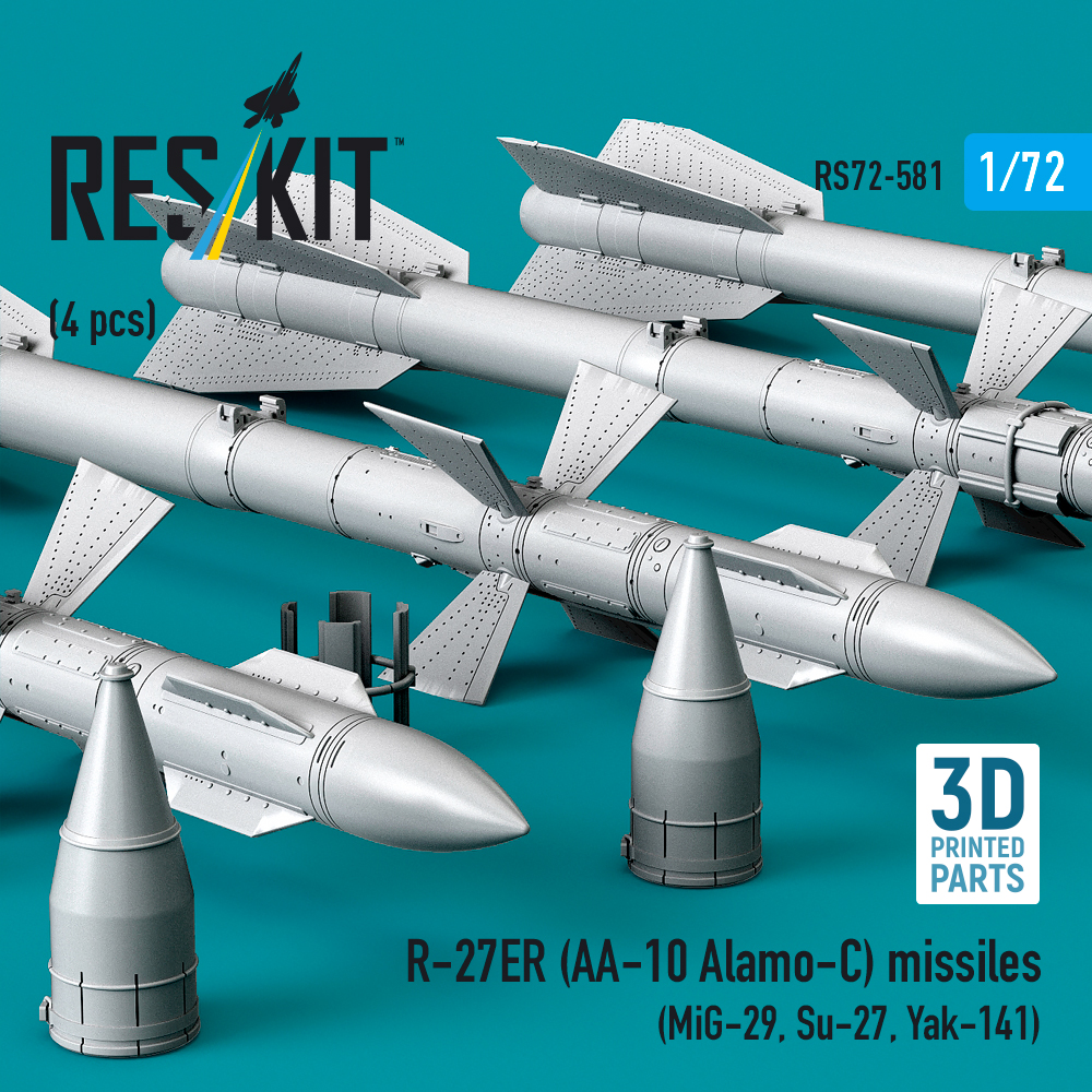 R-27ER (AA-10 Alamo-C) missiles (4 pcs) (Mikoyan MiG--29, Sukhoi Sukhoi Su-27, Yakovlev Yak-141) (3D-Printed) (1/72) Manufacturer: ResKit Code Number: RS72-0581 Scale: 1:72 Item type: Aircraft detailing sets (resin) Price: £11.30 £10.17 (Put this on Backorder and save 10%!) Order Quantity: Availability: