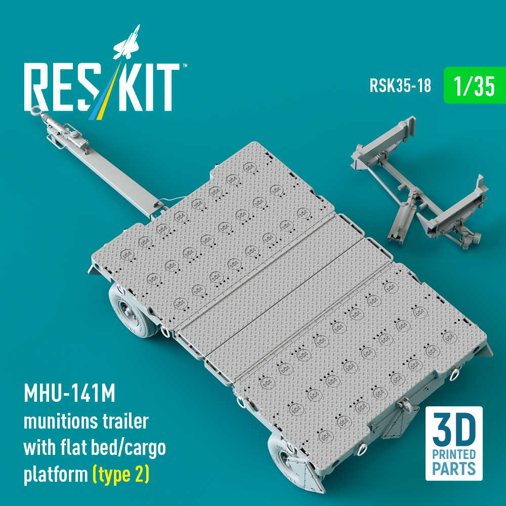 MHU-141M munitions trailer with flat bed/cargo platform (type 2) (3D Printed model kit) Manufacturer: ResKit Code Number: RSK35-0018 Scale: 1:35 Item type: Military vehicle kits (resin) Price: £49.70 £44.73 (Put this on Backorder and save 10%!) Order Quantity: Availability:
