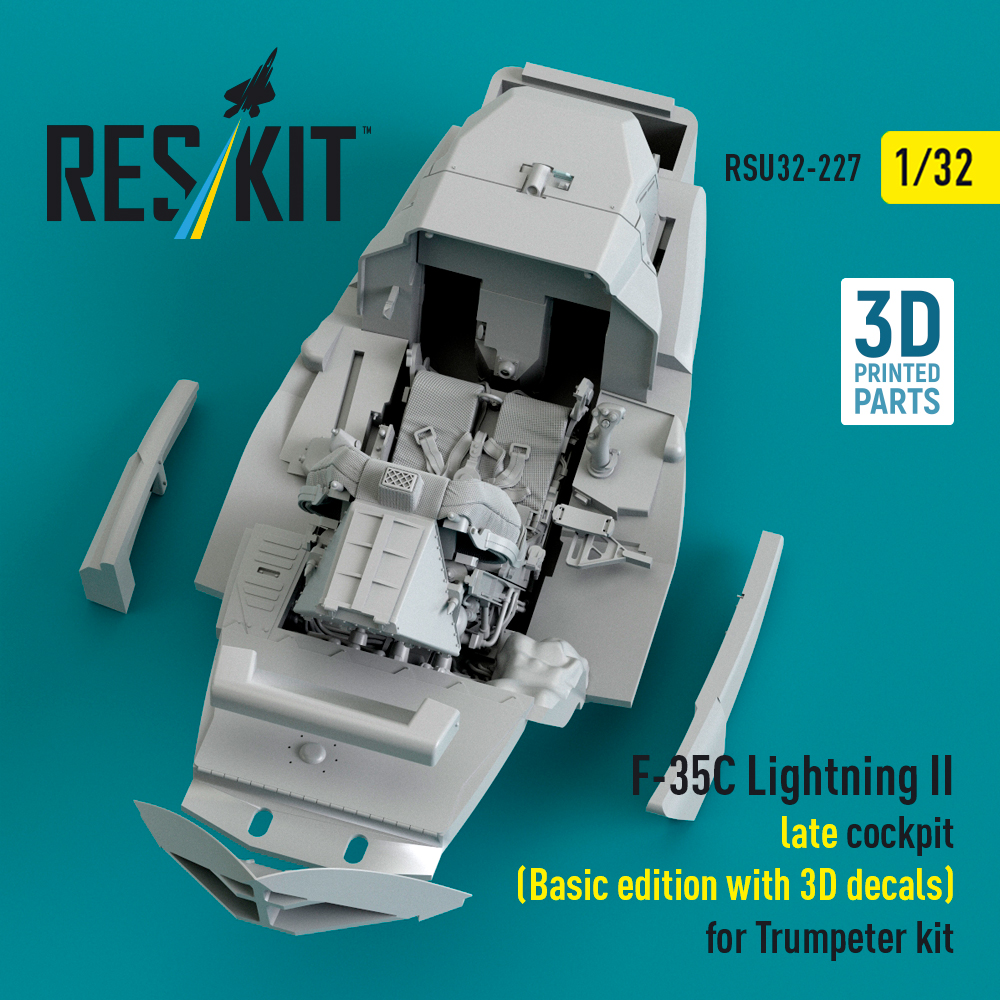 Lockheed-Martin F-35C Lightning II late cockpit (Basic edition with 3D decals) (designed to be used with Trumpeter kits) (3D Printed) Manufacturer: ResKit Code Number: RSU32-0227 Scale: 1:32 Item type: Aircraft detailing sets (resin) Price: £55.40 £49.86 (Put this on Backorder and save 10%!) Order Quantity: Availability: