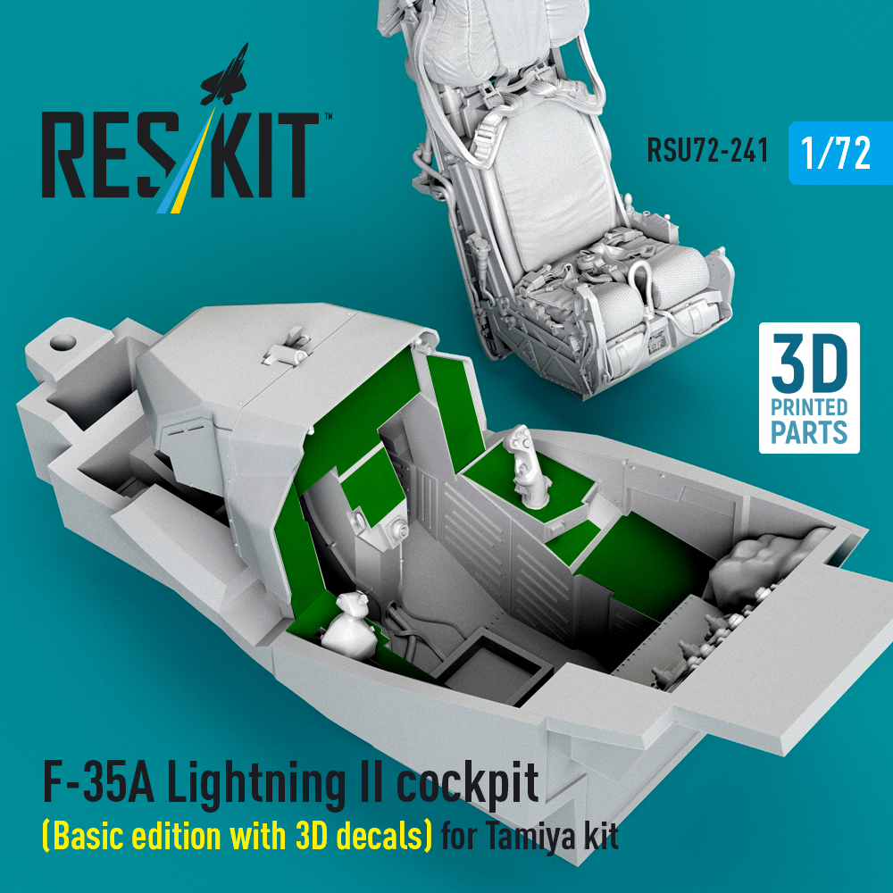 Lockheed-Martin F-35A Lightning II cockpit (Basic edition with 3D decals) for Tamiya kit (3D Printed)				 Manufacturer: ResKit Code Number: RSU72-0241 Scale: 1:72 Item type: Aircraft detailing sets (resin) Price: £22.80  £20.52 (Put this on Backorder  and save 10%!)						Order Quantity: Availability: