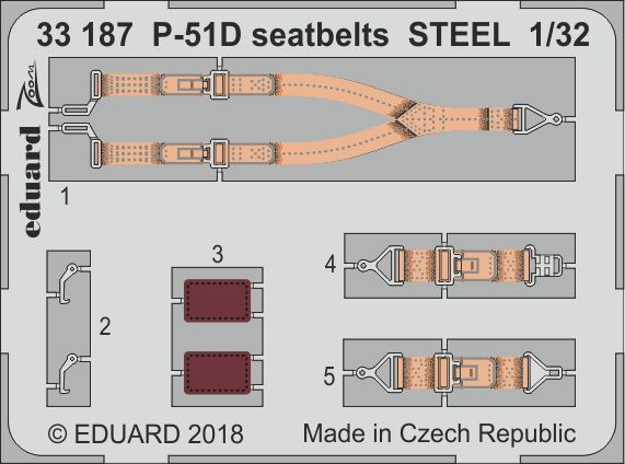 Eduard - ED33187 - 1:32 | North-American P-51D Mustang seatbelts STEEL (designed to be used with Revell kits) More | Aircraft detailing sets (etched) | Catalogue | £5.99 | ||
