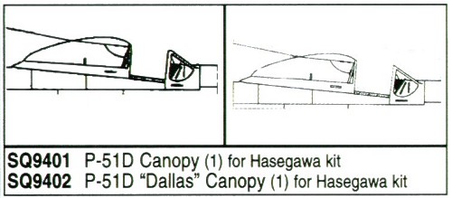 Squadron Canopies - SQS9402 - 1:32 | North-American P-51D Mustang 'Dallas' (designed to be used with Revell kits) More | Aircraft canopies (vacform) | Catalogue | £7.99 | ||