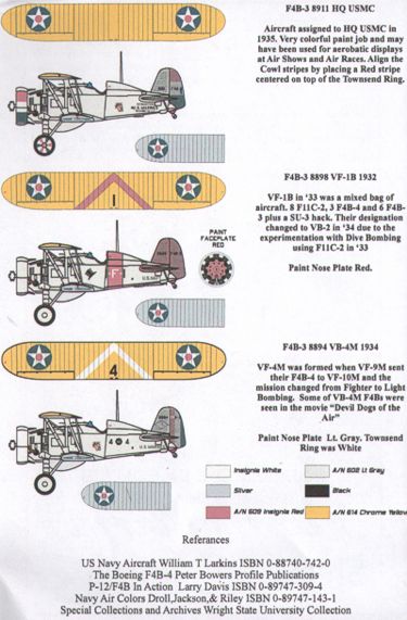 Boeing F4B-3 Conversion (3) 8911 HQ USMC; 8898 VF-1B 1932; 8894 VB-4M 1934. Inc. replacement resin fin.