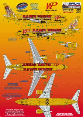 Boeing 737-300 WP Western Pacific N955WP Sam's Town 1, includes photo etch parts. Designed to fit Skyline kit SKY4403A. Manufacturer: Skyline Code Number: SKY14037 Scale: 1:144 Item type: Aircraft decals (civil) Price: