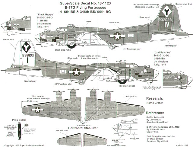 Boeing B-17G Flying Fortress (2) 232023 IV 416 BS `Flak Happy' 94 missions; 238201 I 346 BS `2nd Patches' 20 missions Italy; Both OD/grey