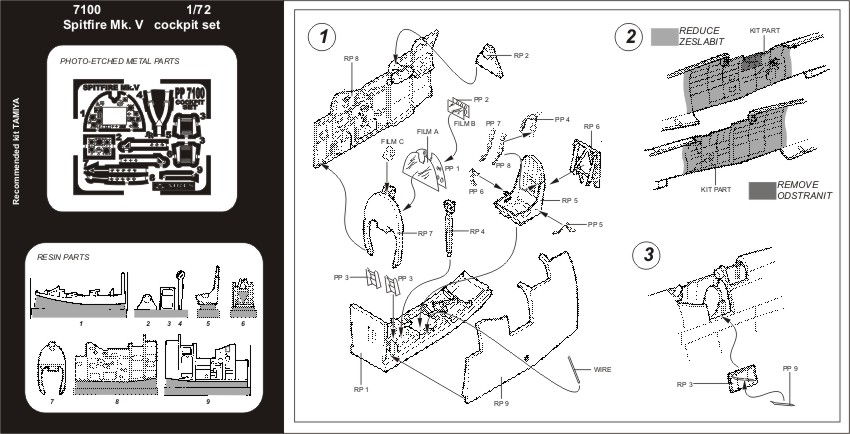 Aires - AIRE7100 - 1:72 | Supermarine Spitfire Mk.V cockpit set (designed to be used with Tamiya kits) More | Aircraft detailing sets (resin) | Catalogue | £9.30 | ||