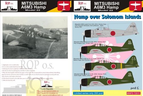 ROP o.s. - MNFD72011 - 1:72 | Mitsubishi A6M3 Hamp model 33 Zero - Hamp over Solomon Islands part 1 More | Aircraft decals (military) | Limited Availability | £7.20 | ||