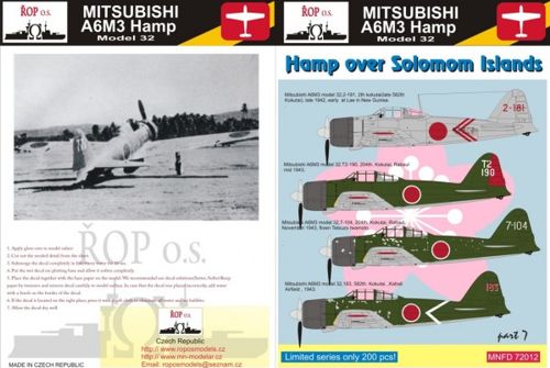 ROP o.s. - MNFD72012 - 1:72 | Mitsubishi A6M3 Hamp model 32 Zero - Hamp over Solomon Islands part 2 More | Aircraft decals (military) | Limited Availability | £7.20 | ||