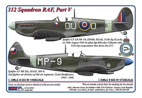 AML - AMLC8033 - 1:48 | 312 th Squadron RAF, Part V / 2 decal version: Supermarine Spitfire LF LR Mk.Vb, EP660, DUoO + Spitfire LF Mk.IXe, SL653, MP-9 More | Aircraft decals (military) | Catalogue | £4.70 | ||