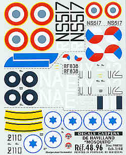Colorado - CA48096 - 1:48 | de Havilland Mosquito Mk.VI Part 2 (4) A52-526 NA-E 1 Sqn RAAF 1945; RF838 IY-12 Czech Air Force 1946; 2110 Israeli Air Force 1956; PRXVI NS517 ER 1/31 Morocco 1947 Arme de L'air; More | Aircraft decals (military) | Limited Availability | £6.99 | ||