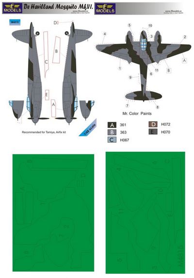 LF Models - LFMM4815 - 1:48 | de Havilland Mosquito Mk.VI camouflage pattern paint masks (designed to be used with Tamiya and Airfix kits) More | Aircraft paint masks (self adhesive) | Catalogue | £9.80 | ||