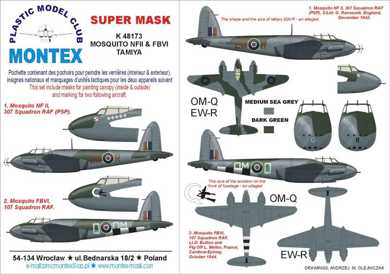 Montex - MXK48173 - 1:48 | de Havilland Mosquito NF Mk.II & Mk.VI 1 canopy mask (exterior) insignia and markings masks (designed to be used with Tamiya kits) More | Aircraft paint masks (self adhesive) | Catalogue | £11.50 | ||