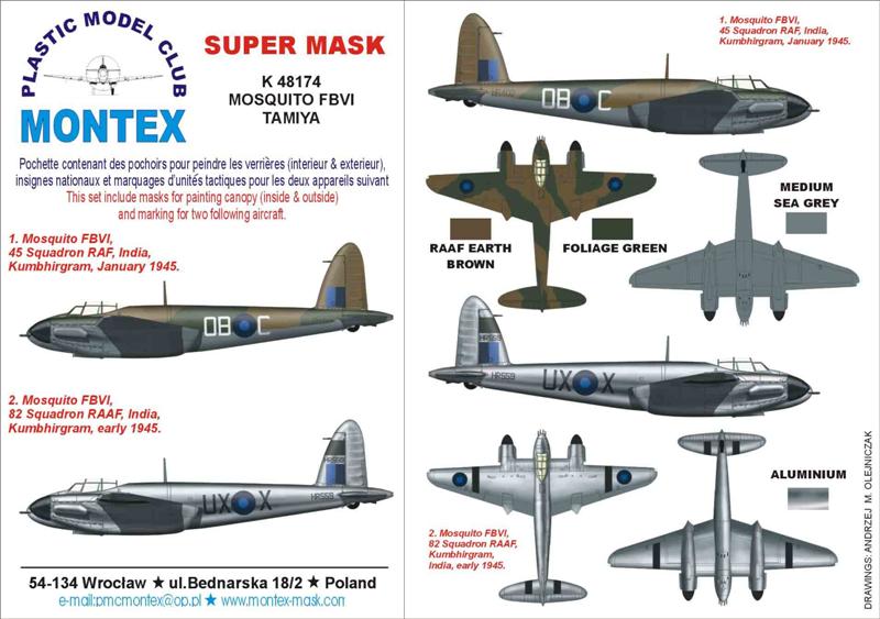 Montex - MXK48322 - 1:48 | de Havilland Mosquito Mk.VI (designed to be used with Tamiya kits) 1 canopy mask (outside canopy frame mask) insignia and markings masks + decals More | Aircraft paint masks (self adhesive) | Catalogue | £10.99 | ||
