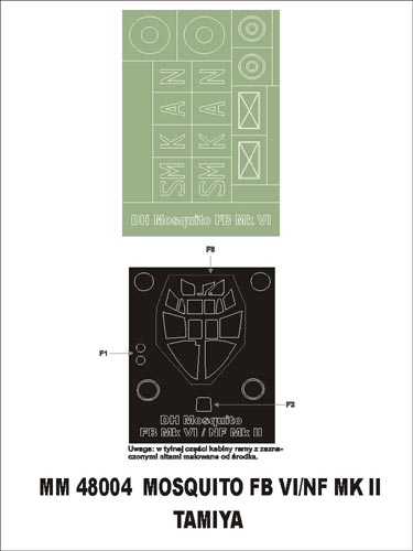 Montex - MXMM48004 - 1:48 | de Havilland Mosquito Mk.VI / NF.II 1 canopy frame paint masks (outside only) + insignia and markings masks (designed to be used with Tamiya kits) More | Aircraft paint masks (self adhesive) | Catalogue | £5.30 | ||