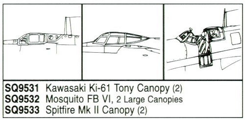 Squadron Canopies - SQS9532 - 1:48 | de Havilland Mosquito Mk.VI (designed to be used with Airfix and Tamiya kits) More | Aircraft canopies (vacform) | Catalogue | £7.99 | ||