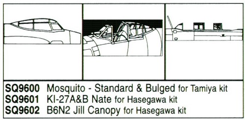 Squadron Canopies - SQS9600 - 1:48 | de Havilland Mosquito Mk.VI (designed to be used with Tamiya kits) More | Aircraft canopies (vacform) | Catalogue | £7.99 | ||